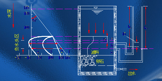 在過濾過程中,當濾層截留了大量雜質(zhì)以致石英砂濾層面以下某一深度處的水頭損失超過該處的水深,便出現(xiàn)負水頭現(xiàn)象。